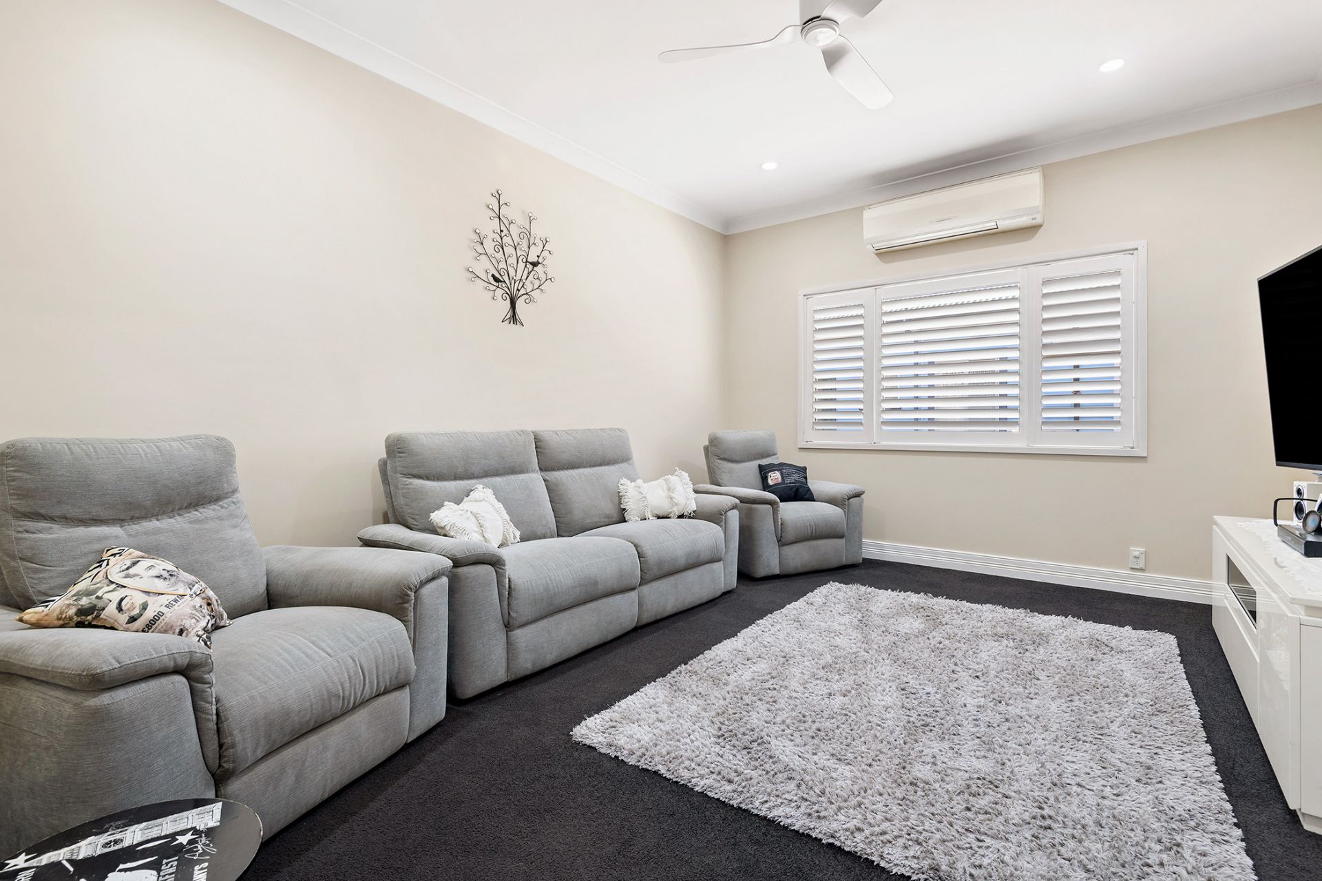 - Separate dining and lounge, with split system air and ceiling fan to the lounge