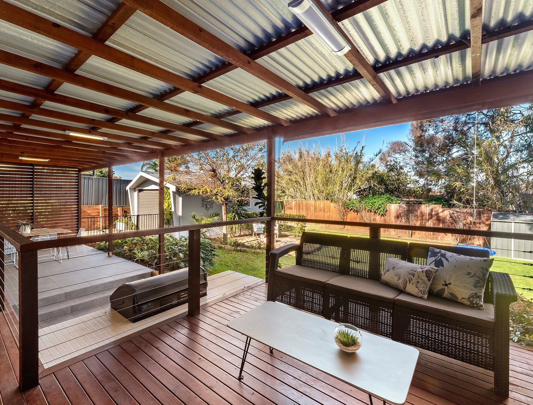 - Undercover entertainment courtyard with integrated barbecue, sun washed deck