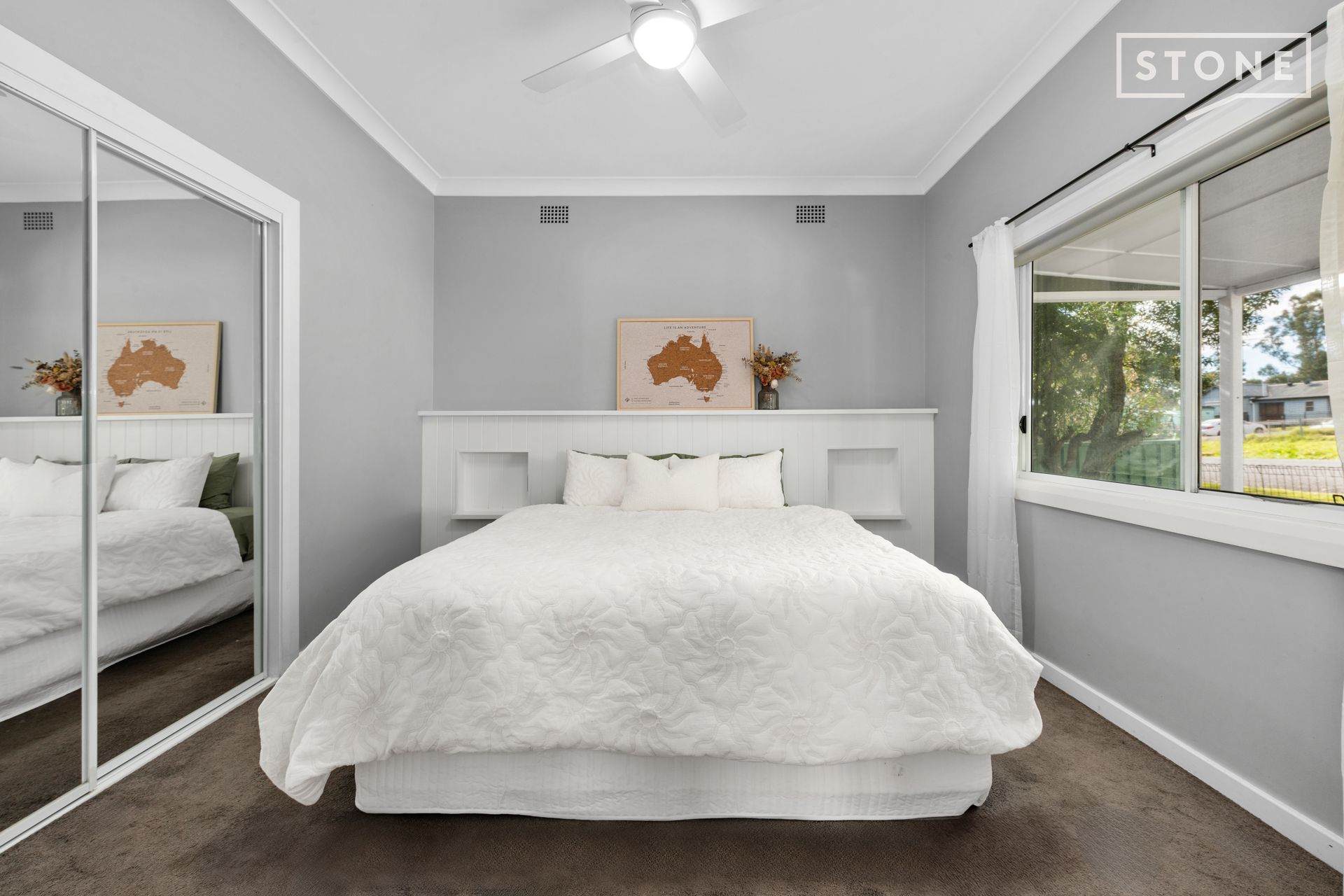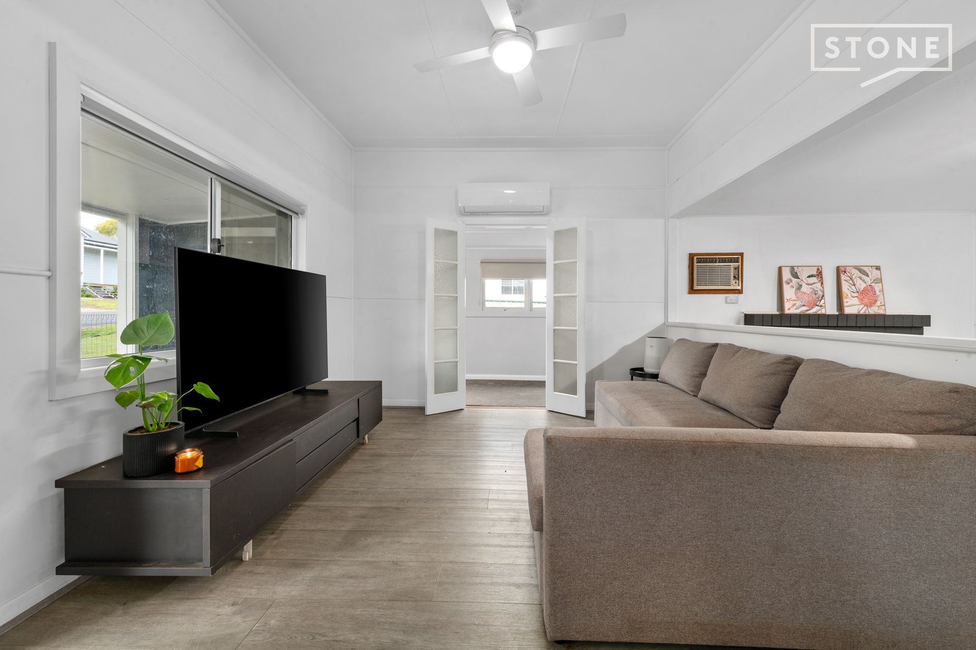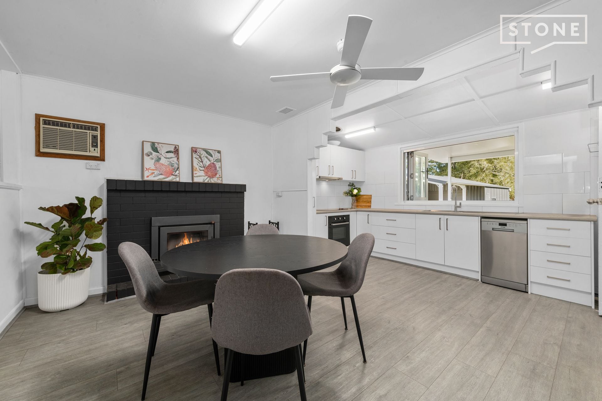 - Floating floors, new carpets and ceiling fans throughout, plus A/C and woodfire in living