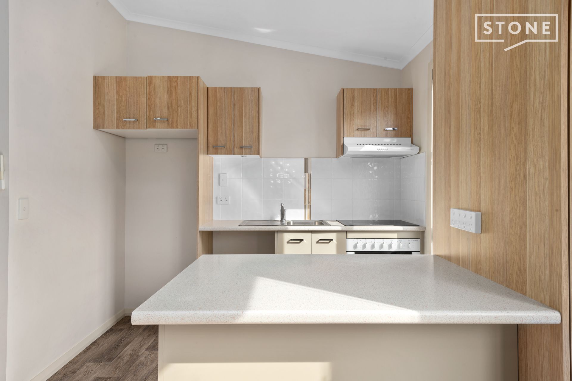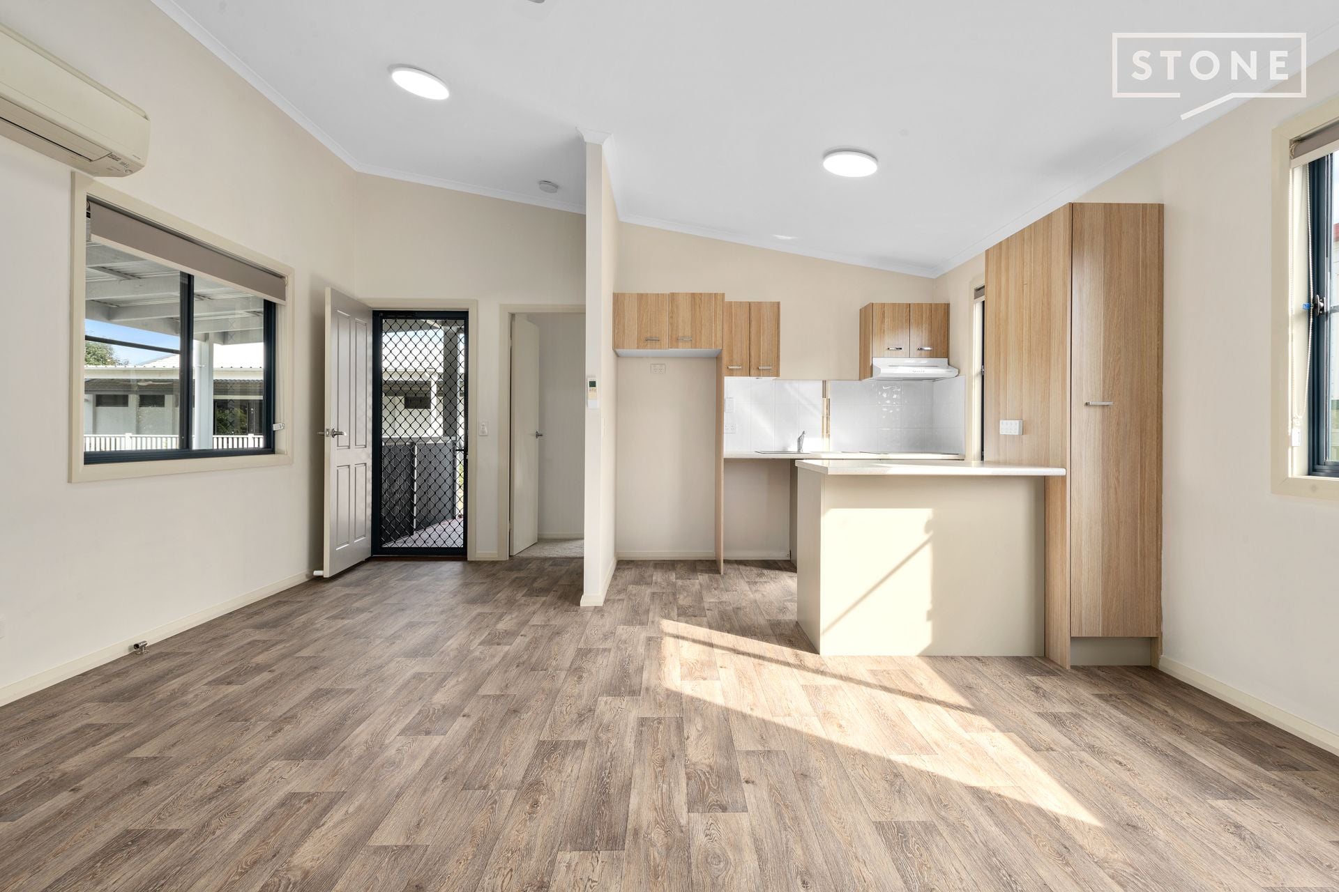 -Open plan design with easy clean floating vinyl floors and an updated kitchen