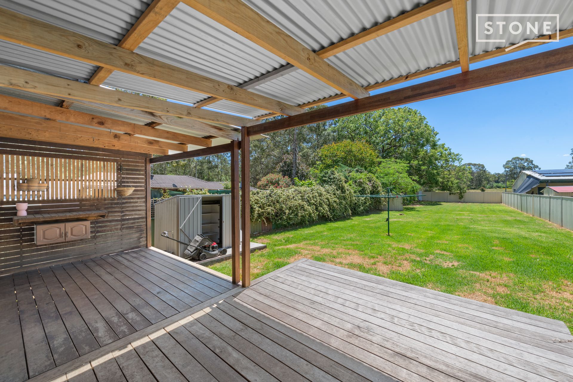 - The yard is north facing with a covered entertaining deck and picturesque outlook
