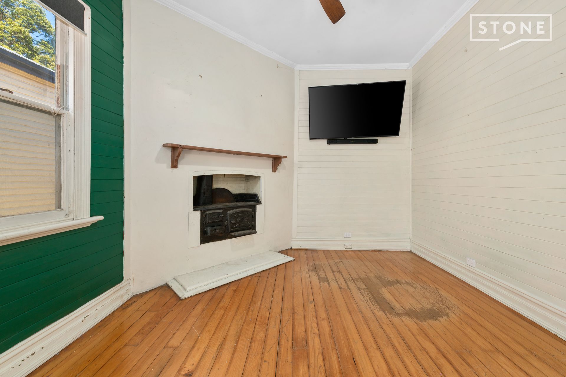 - Home boasts some original charm: iron fretwork, dado boards, feature wood stove