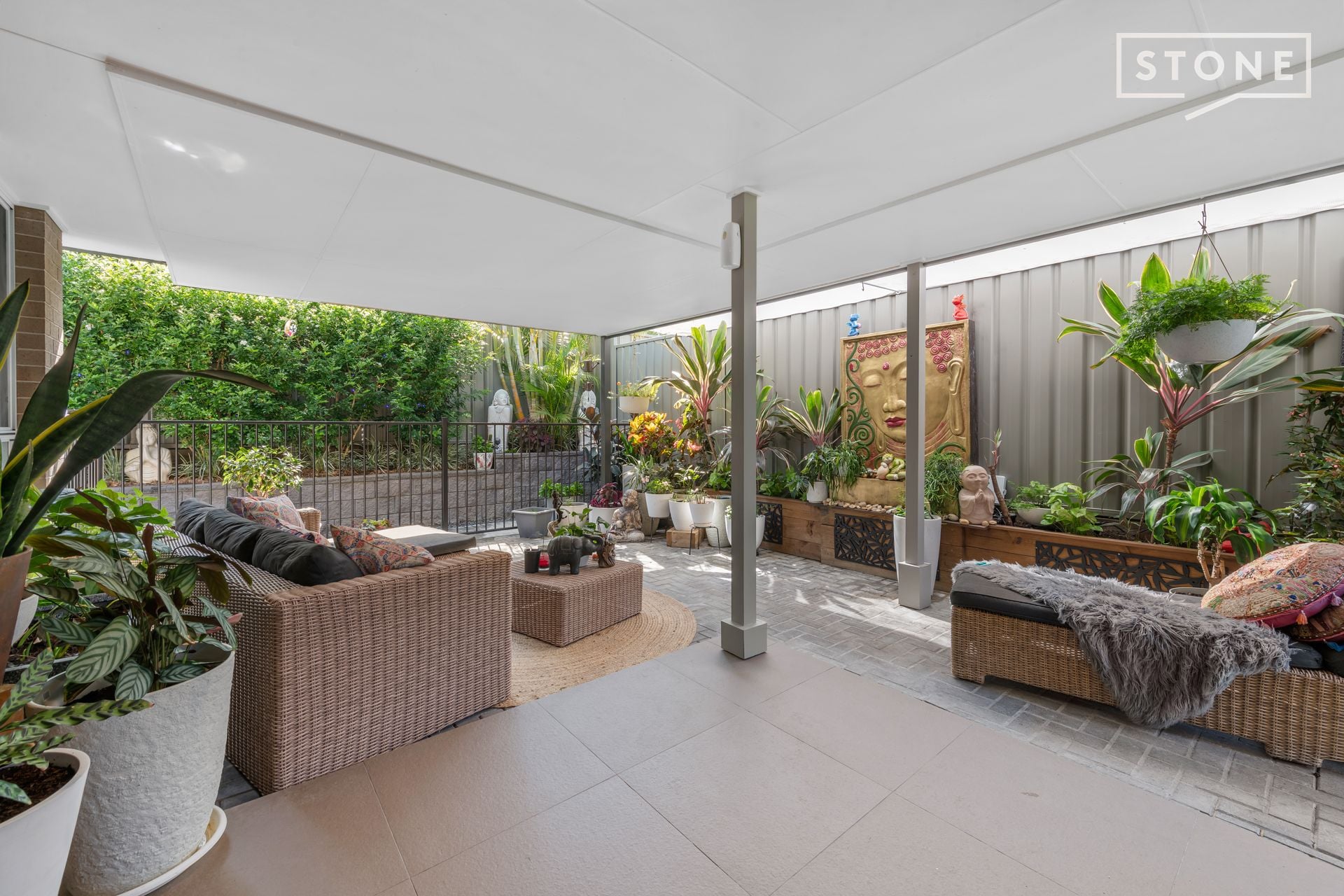 - Spacious covered entertaining patio that connects to a paved low-maintenance yard