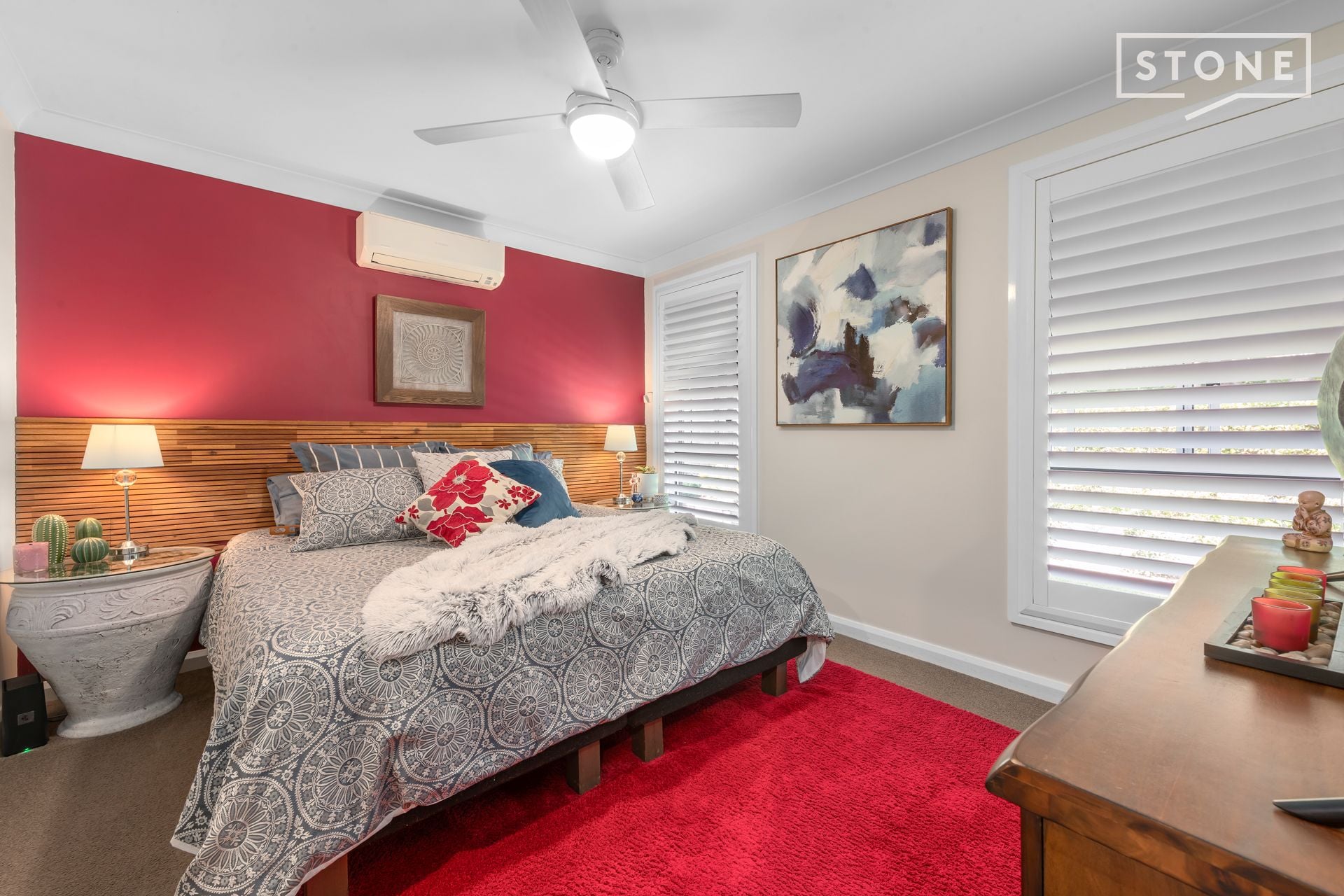 - Three generous bedrooms all with ceiling fans, including a master with ensuite and walk-in-robe